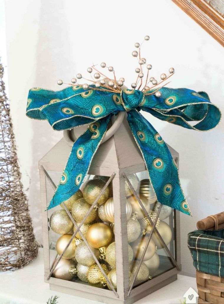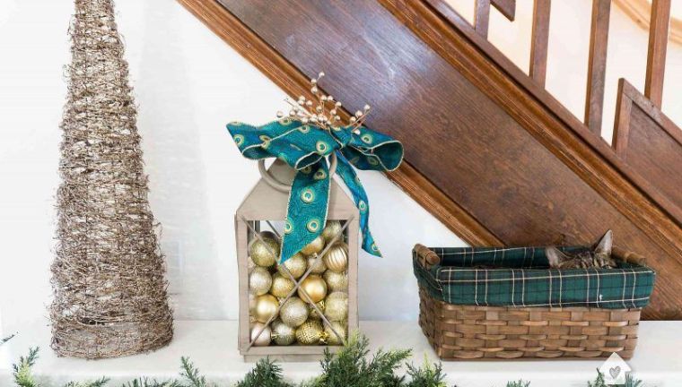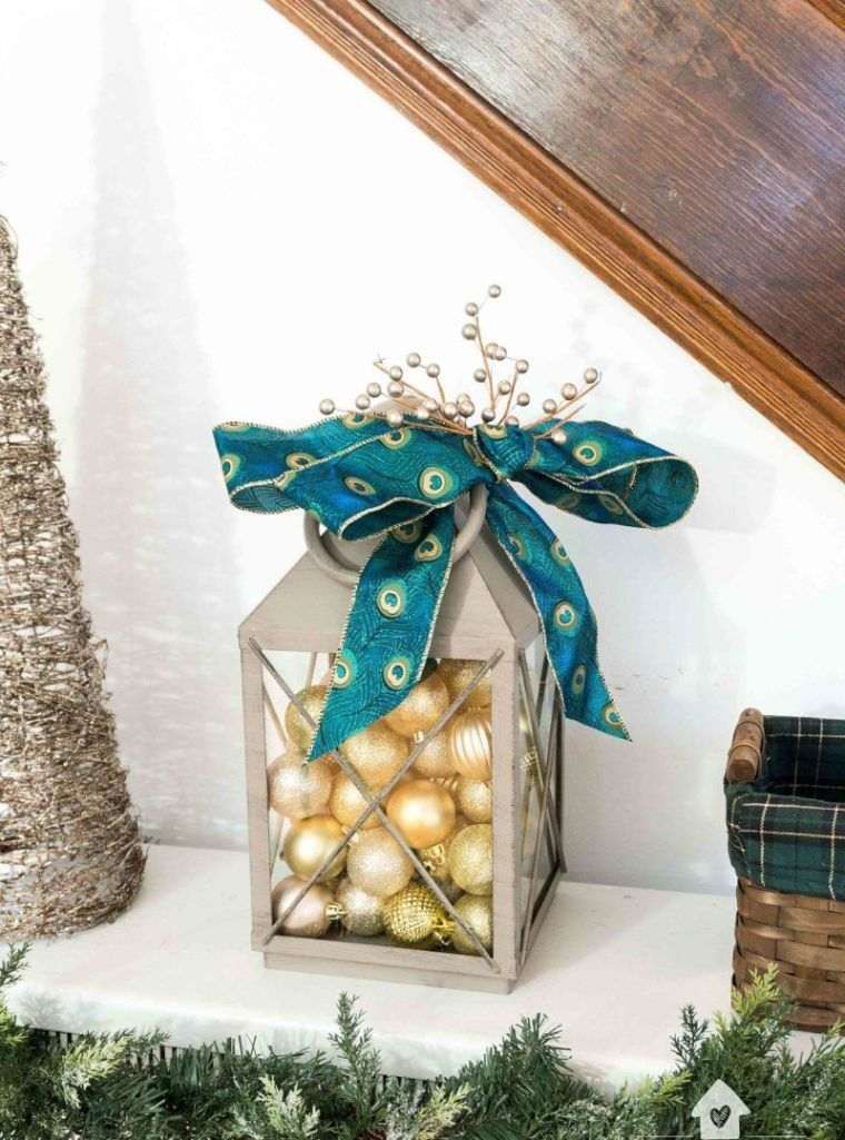 Si votre maison regorge déjà de lanternes, il suffit parfois de peu pour les transformer. Glissez à l’intérieur des boules de Noël, des pommes de pin peintes en or ou en argent, ou d’autres petits objets brillants pour créer une composition festive.