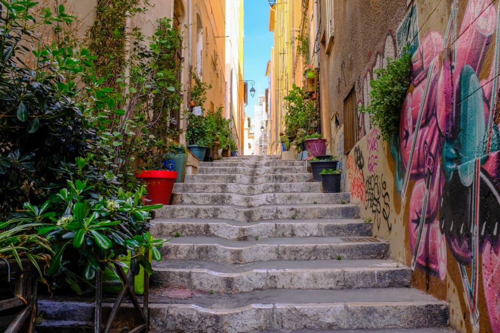 Impossible de rater le plus ancien quartier de la ville. Le Panier déploie ses ruelles étroites, ses murs patinés par le soleil, ses escaliers raides et son foisonnement de boutiques. Ici, l’art de vivre méditerranéen s’exprime dans les détails : un rideau flottant à une fenêtre, un graffiti inattendu, une placette ombragée où les discussions s’étirent jusqu’à la nuit.