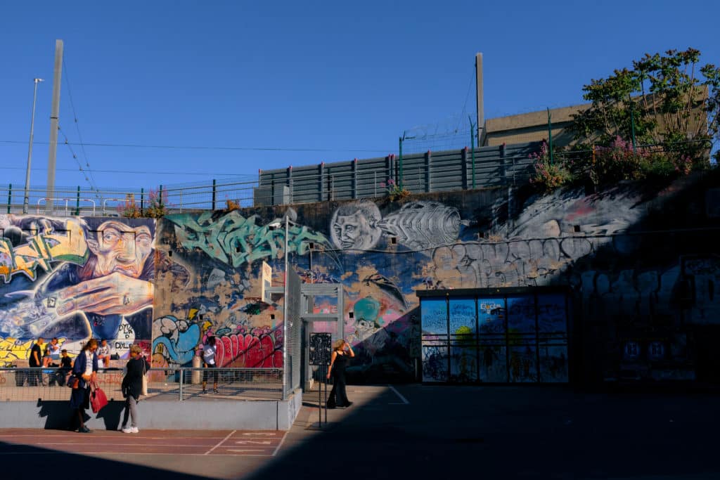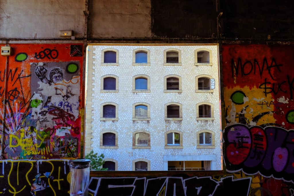 Le cœur battant du quartier, c’est La Friche Belle de Mai. L’ancienne manufacture de tabac s’est muée en laboratoire d’innovation artistique : skatepark bariolé, café, librairie, expositions et marchés s’y côtoient dans une joyeuse effervescence. À deux pas, le Cinéma Le Gyptis s’impose. Sa façade, tapissée de portraits en noir et blanc, intrigue. Ces visages sont l’œuvre de JR, pionnier du street art, qui a immortalisé les habitants du quartier avant de coller leurs portraits monumentaux sur le bâtiment.
